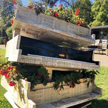 Mauro’s work is complex and varied, ranging from hand painted scores which express the immediacy and humanness of intention while relying prominently on chance operation; to prepared, burning, planted and “liberated” pianos; to Flower Piano, a massive social event with a 12 ring piano music-circus installed annually at the San Francisco Botanical Gardens.